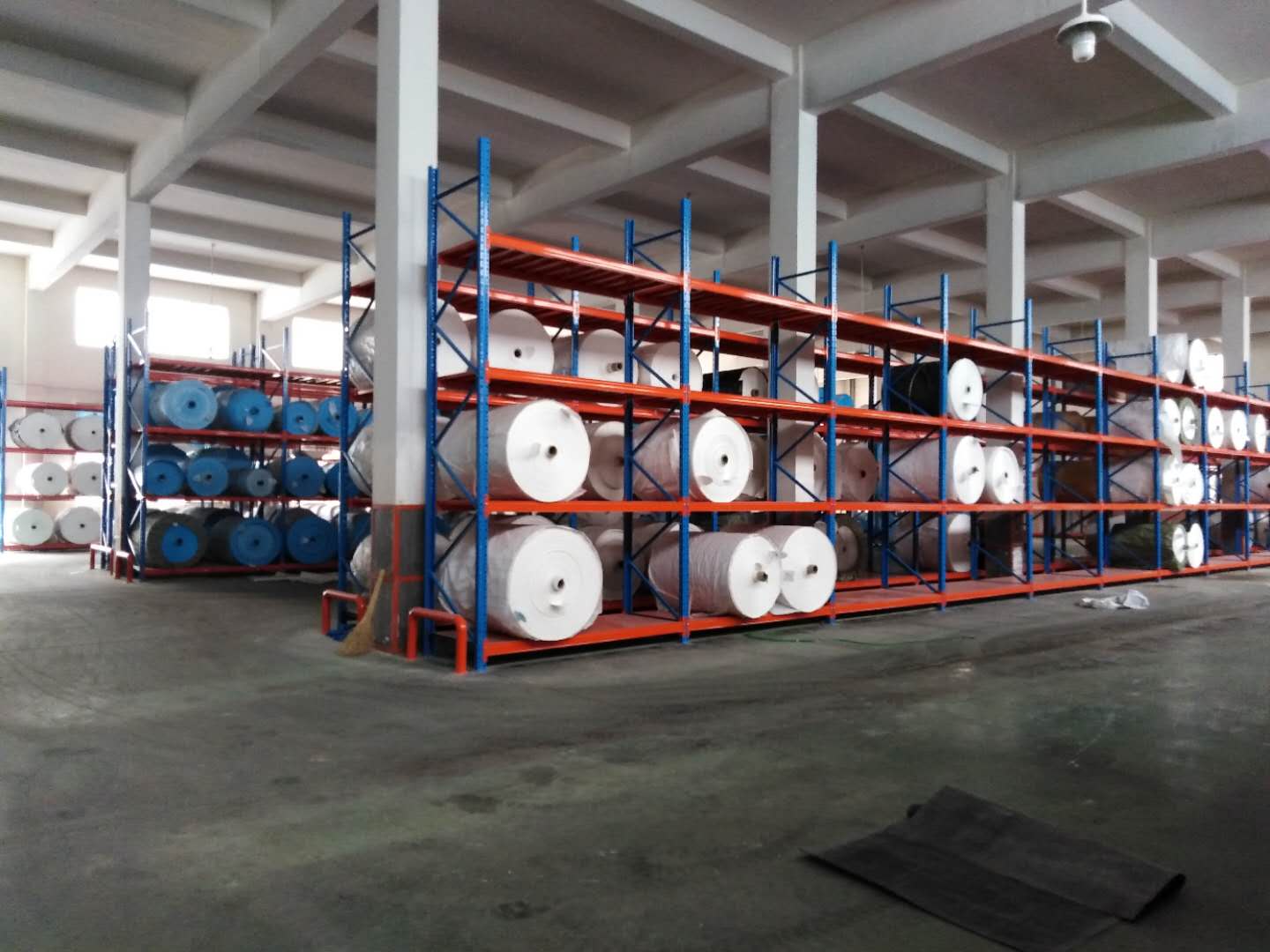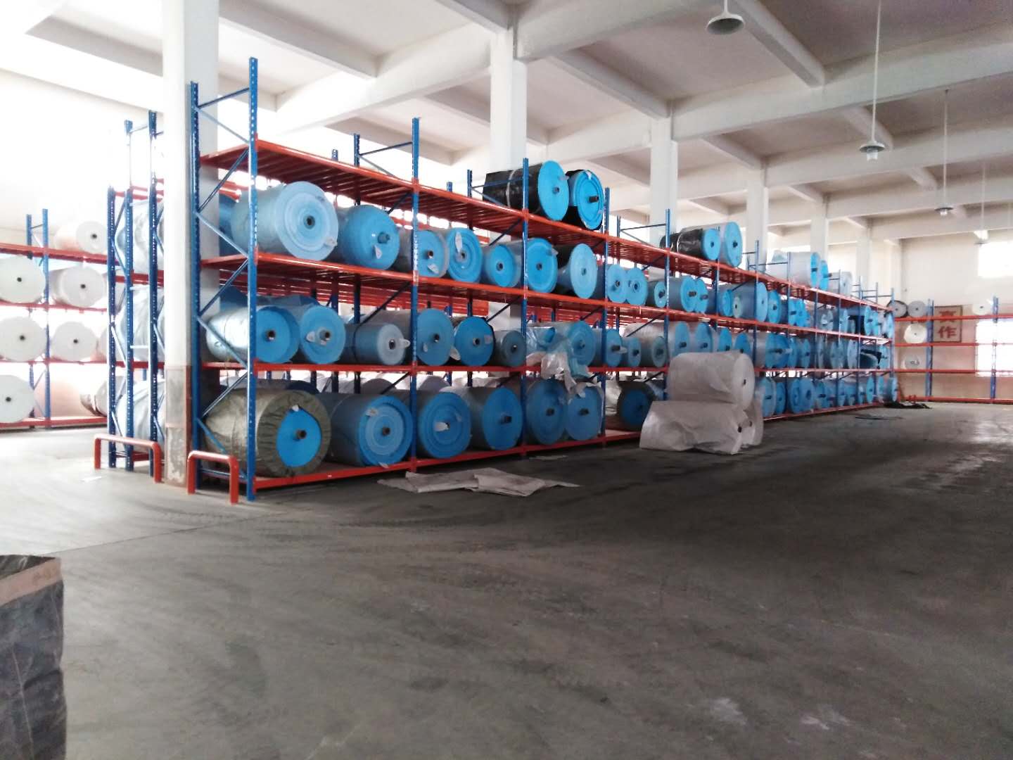 無錫某集裝袋公司,原料庫使用現(xiàn)場,布卷全部上架存放。